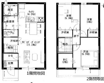 3LDK(洋5帖・洋5.3帖・洋6.9帖・LDK15.4帖・WIC2帖)